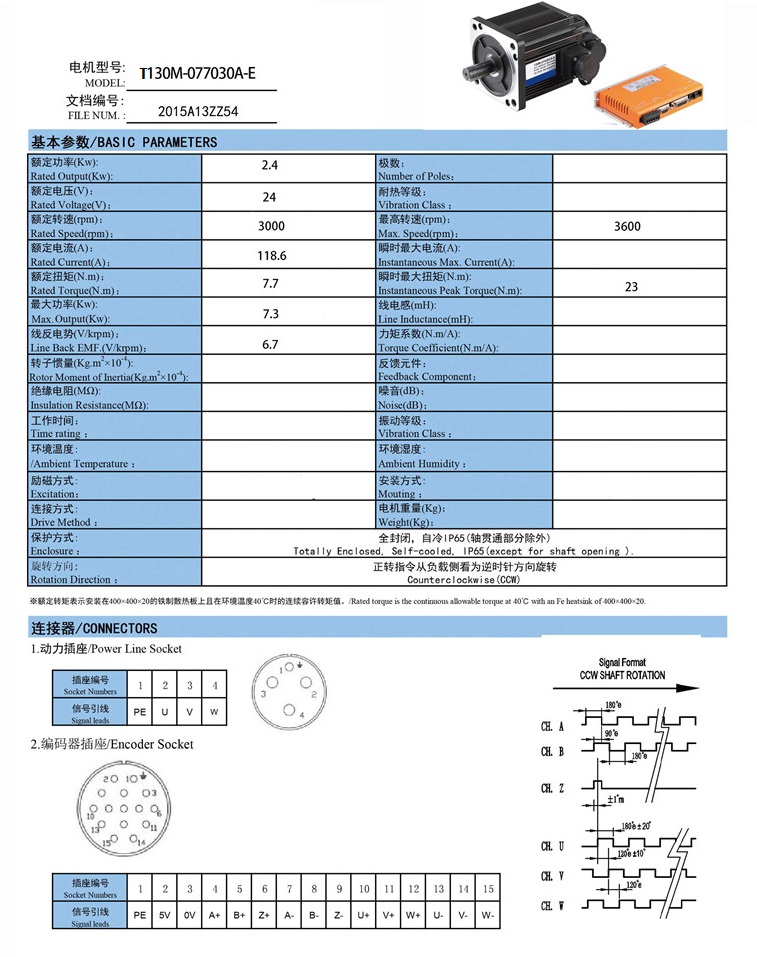直流伺服電機(jī)2.4KW簡介