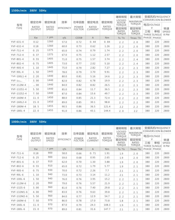 名稱:YVF系列鋁殼變頻調速三相異步電動機